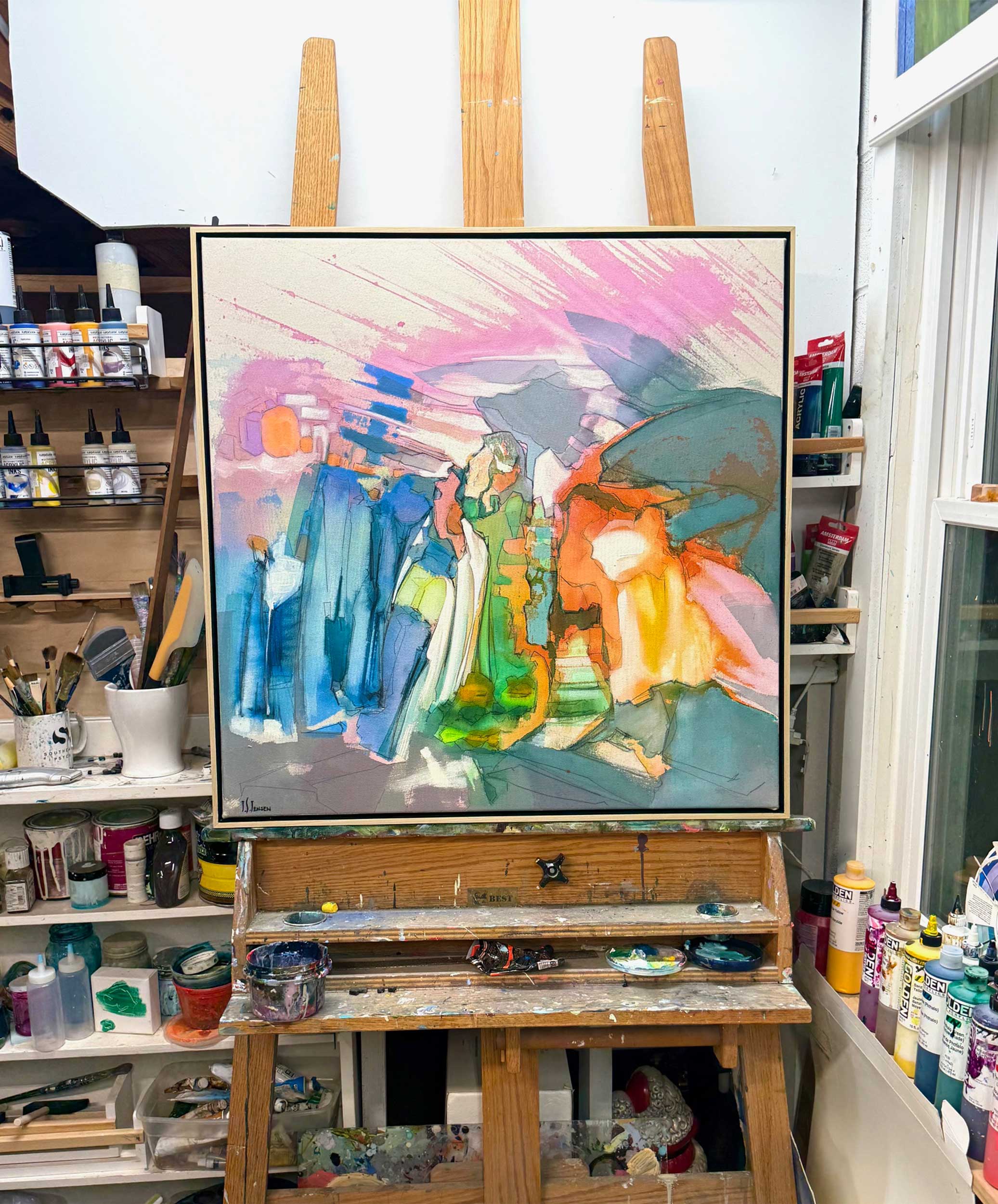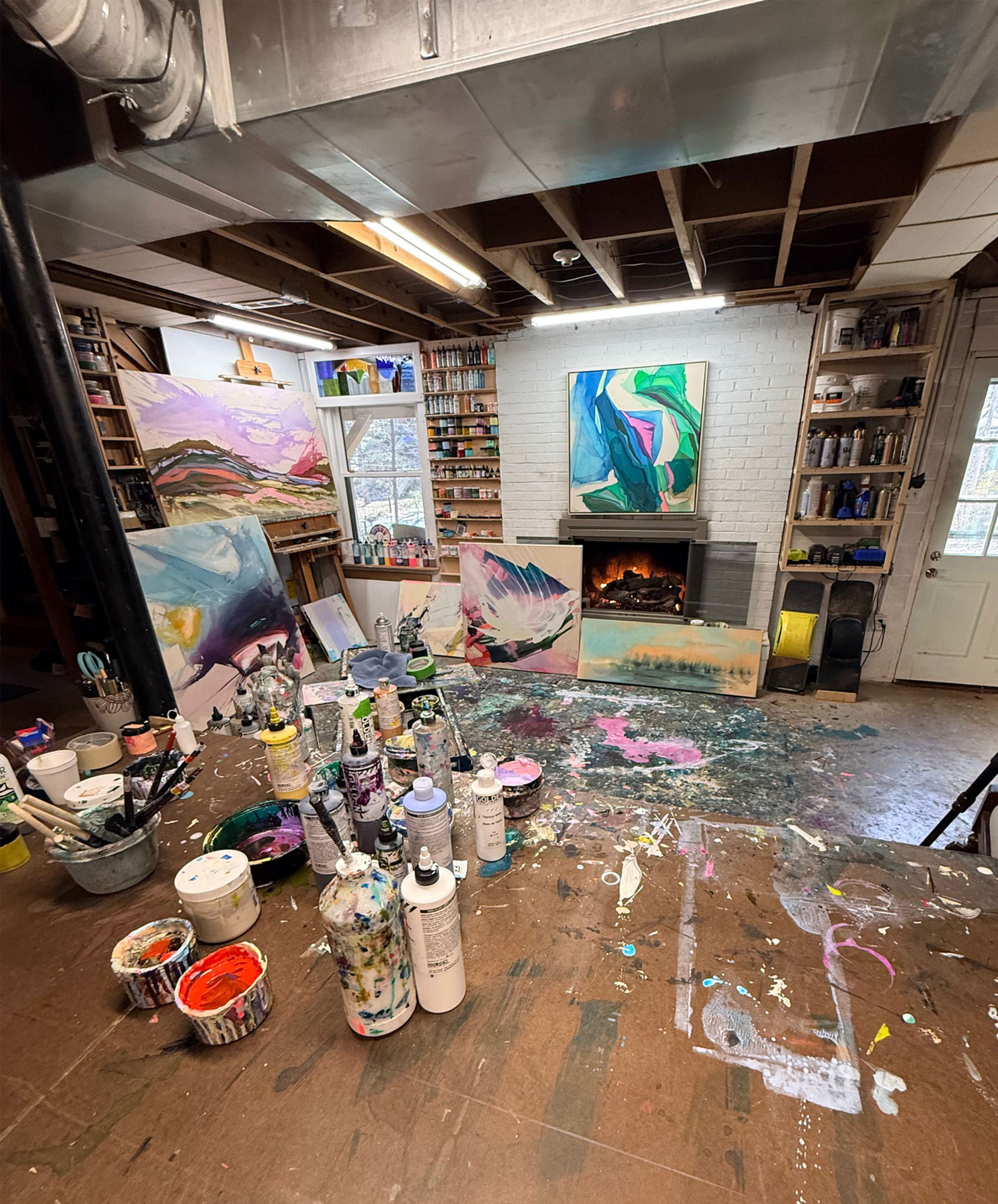 So, I have three kids. The oldest is 14, the youngest is nine, my middle guy is 12. And because of this, I paint in my home. I have a full basement that my wife has been kind enough to let me use in every capacity that I can. So it’s covered in paint all over the floor. There are brushes and tools everywhere. There’s a Lazy Boy chair where I sit and either stare at a work that’s in process or do a journaling practice.