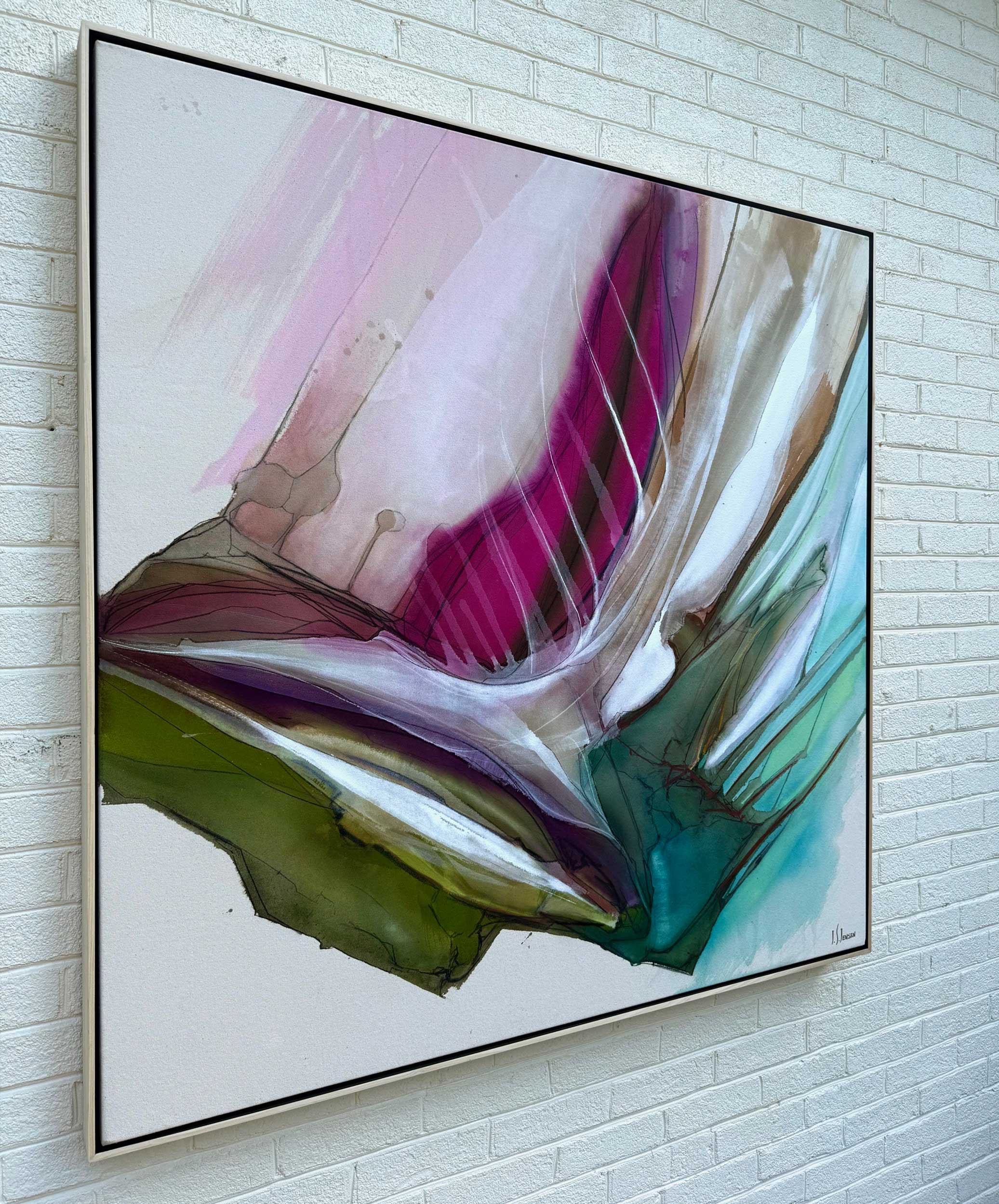 As you’ll see, Josh expresses himself through abstract art, but his work conveys a world that perfectly blends very different elements: a great expressive freedom, energy, positivity, a spirit of experimentation, a profound respect for nature, and remarkable technical control. Moreover, his use of color impressed me from the very first piece of his I saw.