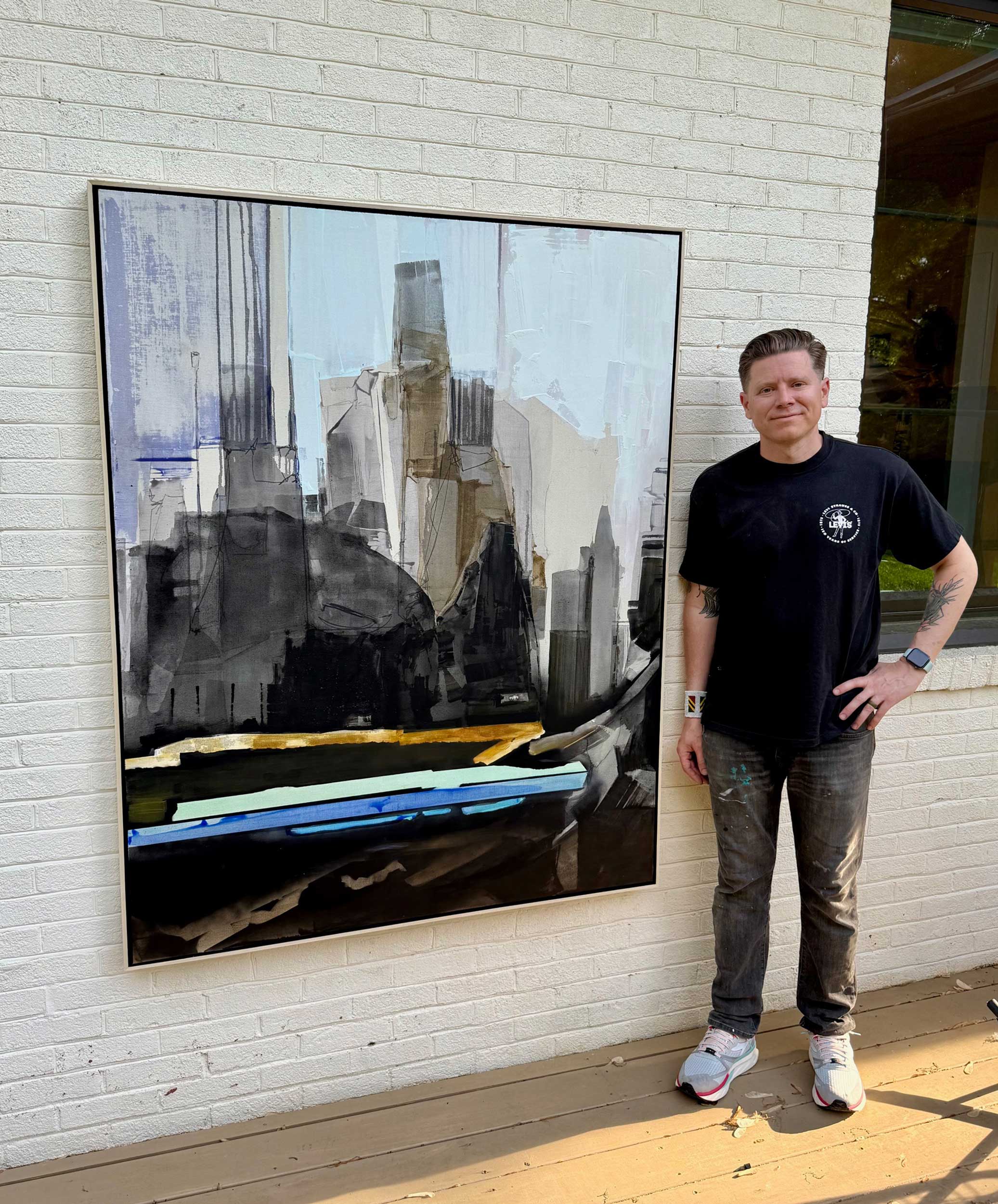 Ho tre figli: il più grande ha 14 anni, il più piccolo nove, quello di mezzo dodici. Per questo motivo dipingo in casa. Ho un seminterrato che mia moglie, con grande generosità, mi ha lasciato usare in ogni modo possibile. Il pavimento è coperto di pittura, ci sono macchie ovunque. Pennelli e strumenti sono sparsi in ogni angolo. C’è anche una poltrona reclinabile, dove mi siedo a osservare un lavoro in corso oppure a scrivere, come parte della mia pratica di journaling.